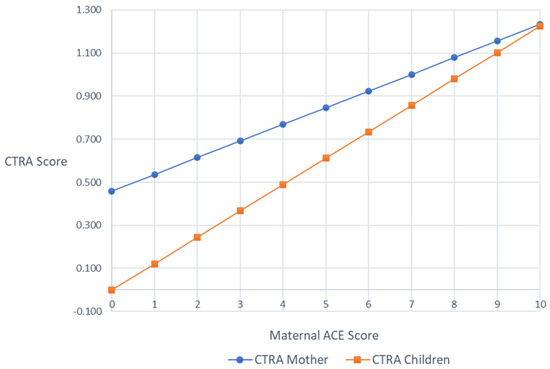 Covariates adjusted mothers’ and children’s CTRA scores by maternal ACEs scores.