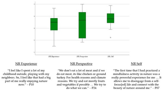 | Nature Relatedness Experience | 3.47 (0.73) | 3.50 (1.00) | 3.17 |