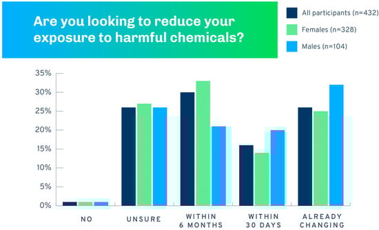 | I am concerned about the chemicals I am exposed to on a daily basis | 1.20% | 8.30% | 16.60% | 45.70% | 28.20% |