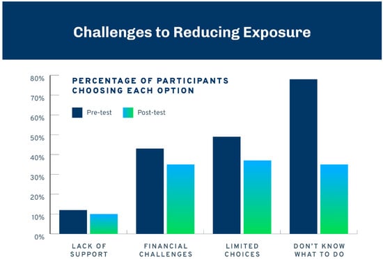 - Boronow, K.E.; Cohn, B.; Havas, L.; Plumb, M.; Brody, J.G. The Effect of Individual or Study-Wide Report-Back on Knowledge, Concern, and Exposure-Reducing Behaviors Related to Endocrine-Disrupting Chemicals. Environ. Health Perspect. 2023, 131, 097005. [Google Scholar] [CrossRef]