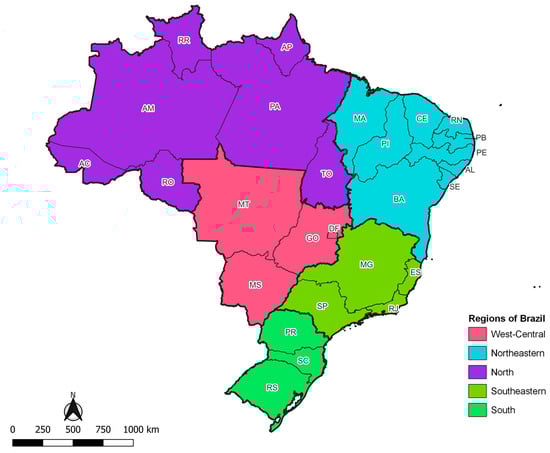 Brazil is a country with continental dimensions, divided into 26 states and a Federal District (Figure 2).