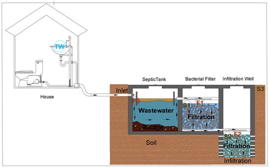 - AFNOR. Non-Collective Sanitation Facilities—For Individual Residential Houses with up to 20 Main Rooms—Part 1-1: Specification of Standard Technical Clauses; AFNOR: Paris, France, 2013. [Google Scholar]