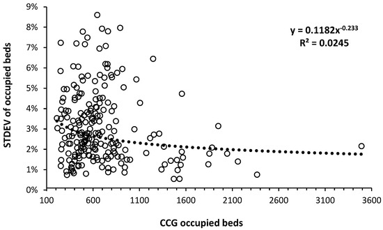 Figure 1 shows the volatility (standard deviation for the 6 years 2014/15 to 2019/20) as a percent of bed demand in 2019/20 for each CCG.
