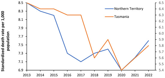 The Northern Territory is not only an ASMR outlier but also contains most of the Australian population of Indigenous people, who have unique profiles for disease and expressed health care demand; see L.57, in [