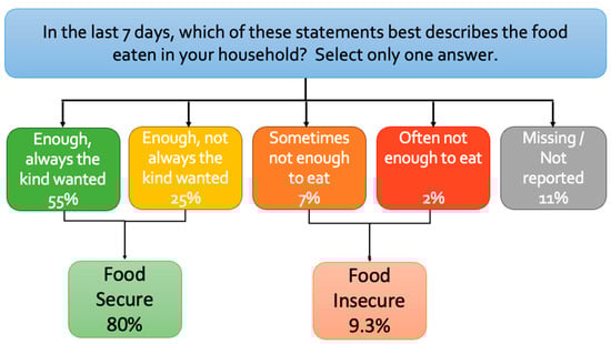 - Schanzenbach, D.W.; Pitts, A. Food Insecurity in the Census Household Pulse Survey Data Tables; IPR Rapid Research Report; Northwestern University Institute for Policy Research: Evanston, IL, USA, 2020. [Google Scholar]