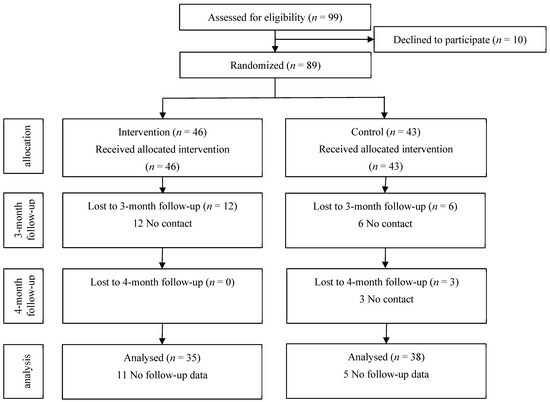 Chicago/Turabian StyleMaruyama, Kayo, and Kumiko Morita. 2024. "Effectiveness of a Social-Media-Based Diet and Physical Activity Programme for Fathers in Japan: A Randomised Controlled Trial" International Journal of Environmental Research and Public Health 21, no. 8: 1104. https://doi.org/10.3390/ijerph21081104