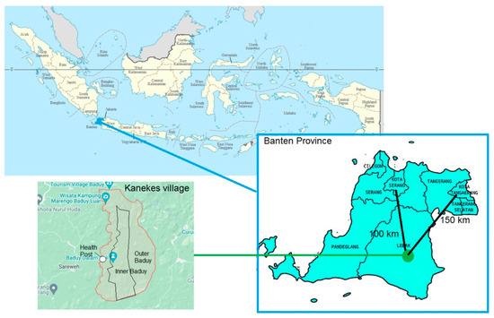 In Indonesia, the Baduy community from Banten province is one such Indigenous group facing challenges related to health literacy and stunting. The Baduy people live in Kanekes, a mountainous village in the centre of the province, about 100 km from the provincial capital, Serang, and 150 km from Tangerang City, which is part of the Greater Jakarta area. The map below shows the location of the Baduy community.