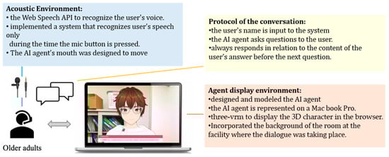 This study was conducted with the cooperation of the Silver Human Resources Center. We would like to thank all the study participants. In this study, the agent used Open AI’s ChatGPT API to generate appropriate responses that match the elderly person’s responses. All individuals listed in this section agree to this statement.