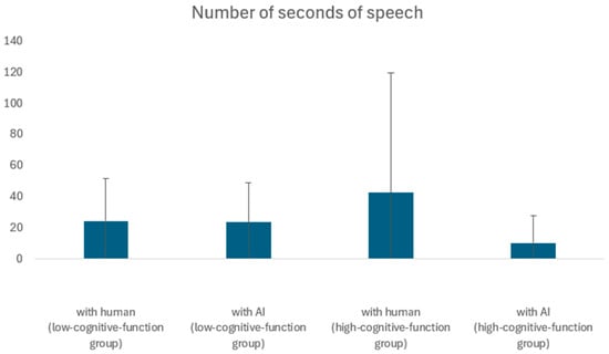 Comparison of high- and low-cognitive-function groups in terms of seconds of speech.