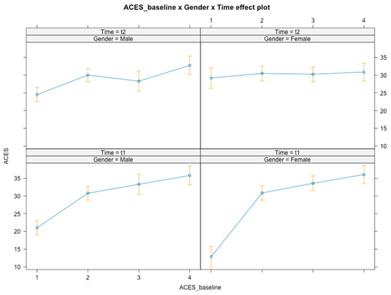 Graphical representation of interaction effects (time × gender × baseline level) on emotional knowledge.