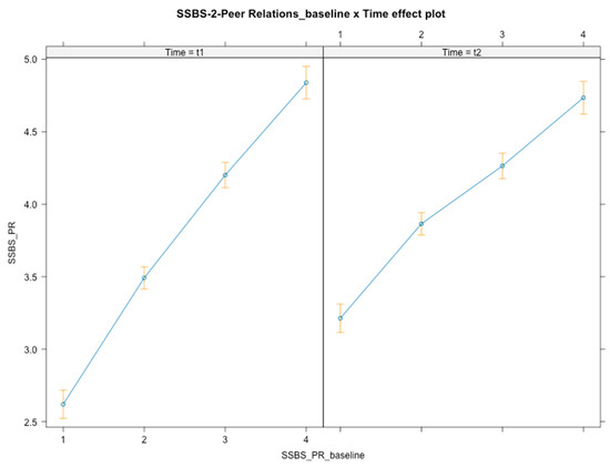 Graphical representation of interaction effects (time × baseline level) on peer relations.