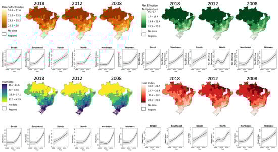 Spatiotemporal distribution of the thermal indices in Brazil.