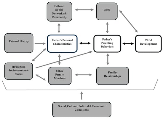 - Cabrera, N.J.; Fitzgerald, H.E.; Bradley, R.H.; Roggman, L. The Ecology of Father-Child Relationships: An Expanded Model. J. Fam. Theory Rev 2014, 6, 336–354. [Google Scholar] [CrossRef]