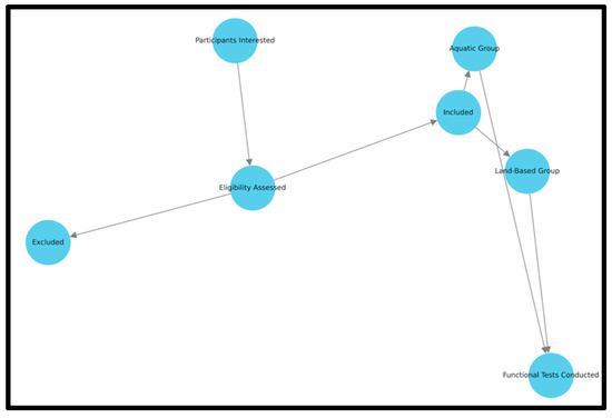 The participants of this study were recruited from the senior program of a city in Chile, in collaboration with recreational workshops offered by local senior recreation centers. These workshops provide activities tailored to women aged 60 years or older, conducted in both aquatic and land-based settings. The research team identified and personally contacted the centers, obtaining the necessary authorizations from workshop coordinators. The flowchart in Figure 1 details participant eligibility, group assignment, and overall study design.