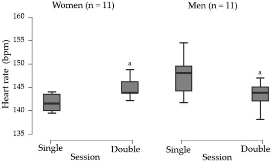 Heart rate comparison between single and double sessions for women. a Statistically significant difference compared with the single session.
