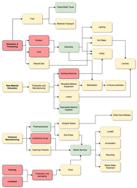 - Sherman, J.D.; MacNeill, A.; Thiel, C. Reducing Pollution From the Health Care Industry. JAMA 2019, 322, 1043–1044. [Google Scholar] [CrossRef] [PubMed]