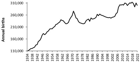 - McDonald, P.; Kippen, R. Forecasting Births Using a Three Parameter Model. Human Fertility Database. Max Planck Institute for Demographic Research (Germany) and Vienna Institute of Demography (Austria). Available online: https://www.humanfertility.org/File/GetDocument/Docs/Symposium/McDonald_Kippen.pdf (accessed on 29 December 2024).