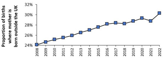 - Office for National Statistics. National Population Projections, Fertility Assumptions: 2020-Based Interim. Available online: https://www.ons.gov.uk/peoplepopulationandcommunity/populationandmigration/populationprojections/methodologies/nationalpopulationprojectionsfertilityassumptions2020basedinterim (accessed on 1 November 2024).