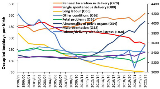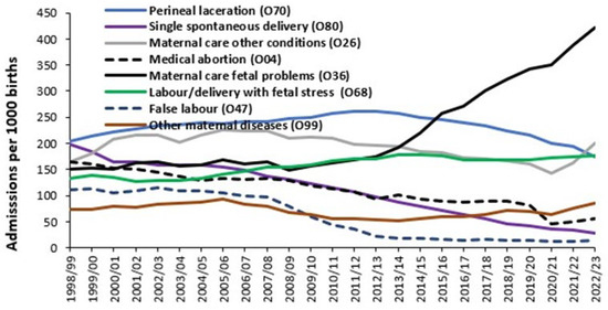 3.6. Trends in Admissions Relating to Pregnancy and Childbirth