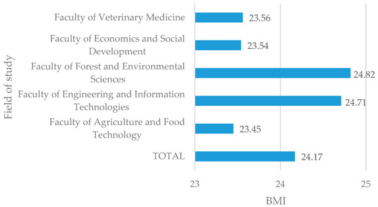 An above-average BMI was observed in two faculties: the Faculty of Forest and Environmental Sciences and the Faculty of Engineering and Information Technologies.