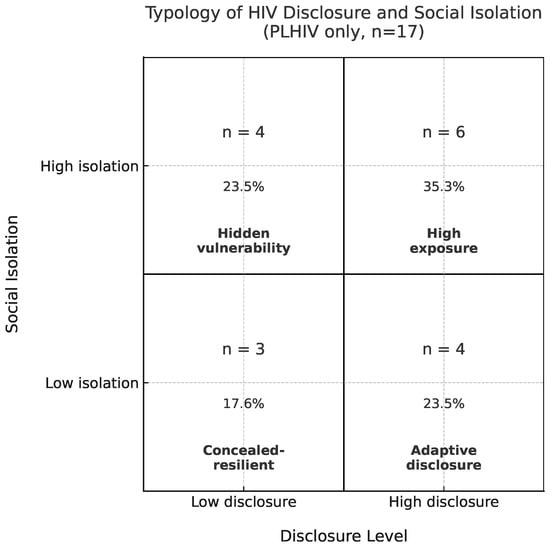 To explore patterns linking disclosure and social isolation, we classified PLHIV participants into four interpretive categories based on their relative positions in the disclosure–isolation space (Figure 3). These categories are used heuristically to describe broad tendencies in the data and should not be interpreted as definitive groupings, especially given the small sample size.