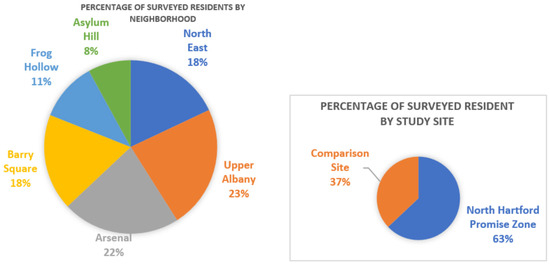 This study was conducted in a purposive sampling frame of 6 low-income, ethnically diverse neighborhoods in Hartford: Northeast, Upper Albany, Clay Arsenal, Asylum Hill, Frog Hollow, and Barry Square. In consultation with the Community PIs and the CAB, these sites were selected because most of the residents are Black and Latinx with low income. Importantly, there is variation across sites in terms of income, race/ethnicity, percentage of foreign-born residents, urbanicity, health risk factors, food retail environment, and NHPZ status. In 2015, three of the study sites (Northeast, Upper Albany, Clay Arsenal) were designated as Promise Zones under the Obama Administration as part of the U.S. Department of Housing and Urban Development’s Promise Zone initiative (US Department of Housing and Urban Development, 2015, 2020) [51]. Thus, this NHPZ designation reflects the high levels of disinvestment, high poverty, distress, unemployment, food insecurity, and crime in the community. For instance, the poverty rate in the NHPZ is 49% (compared to 33.6% in Hartford and 10.8% in CT) [52]. The NHPZ comprises 19 census block groups, and the comparison sites have 26 census block groups.