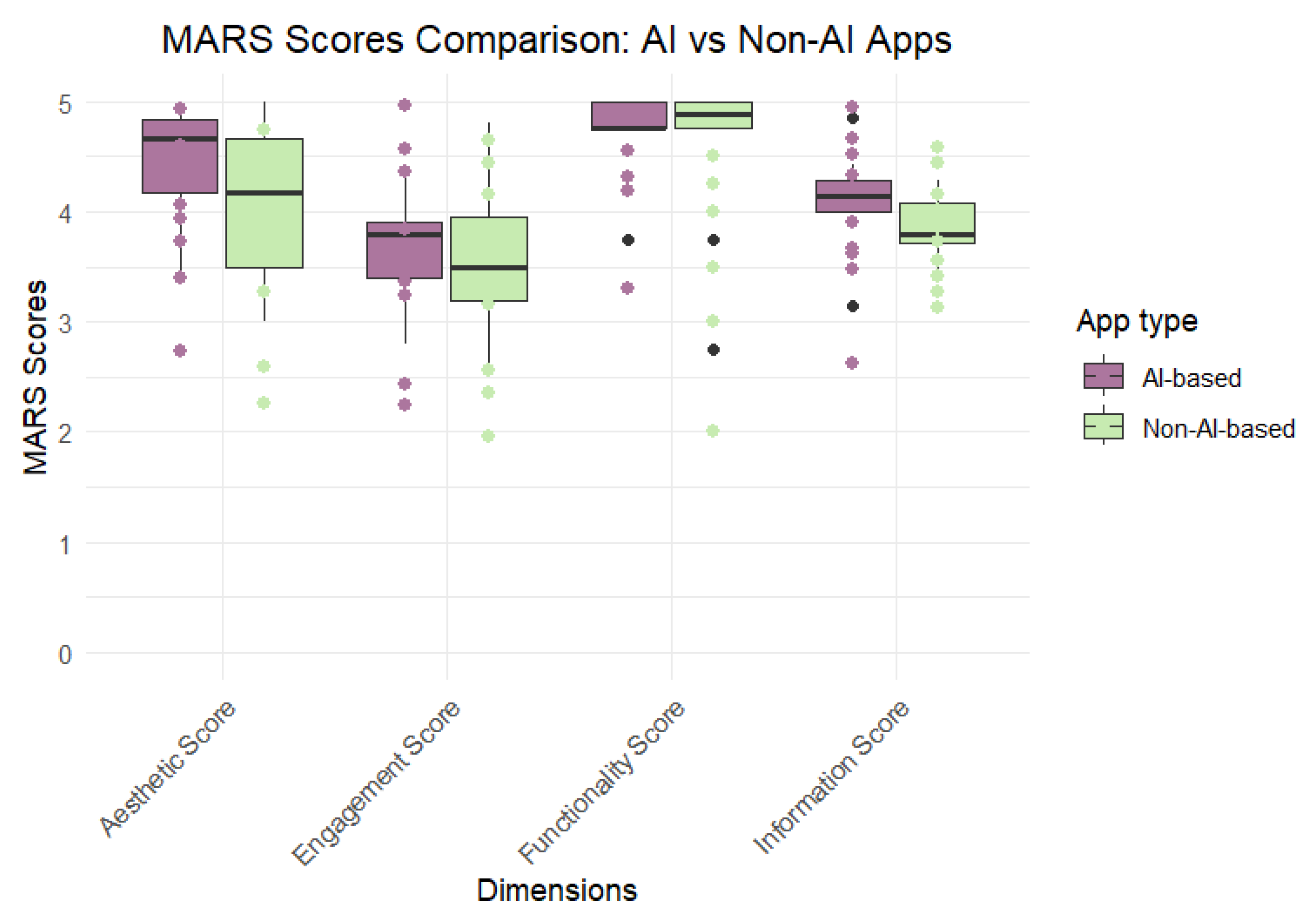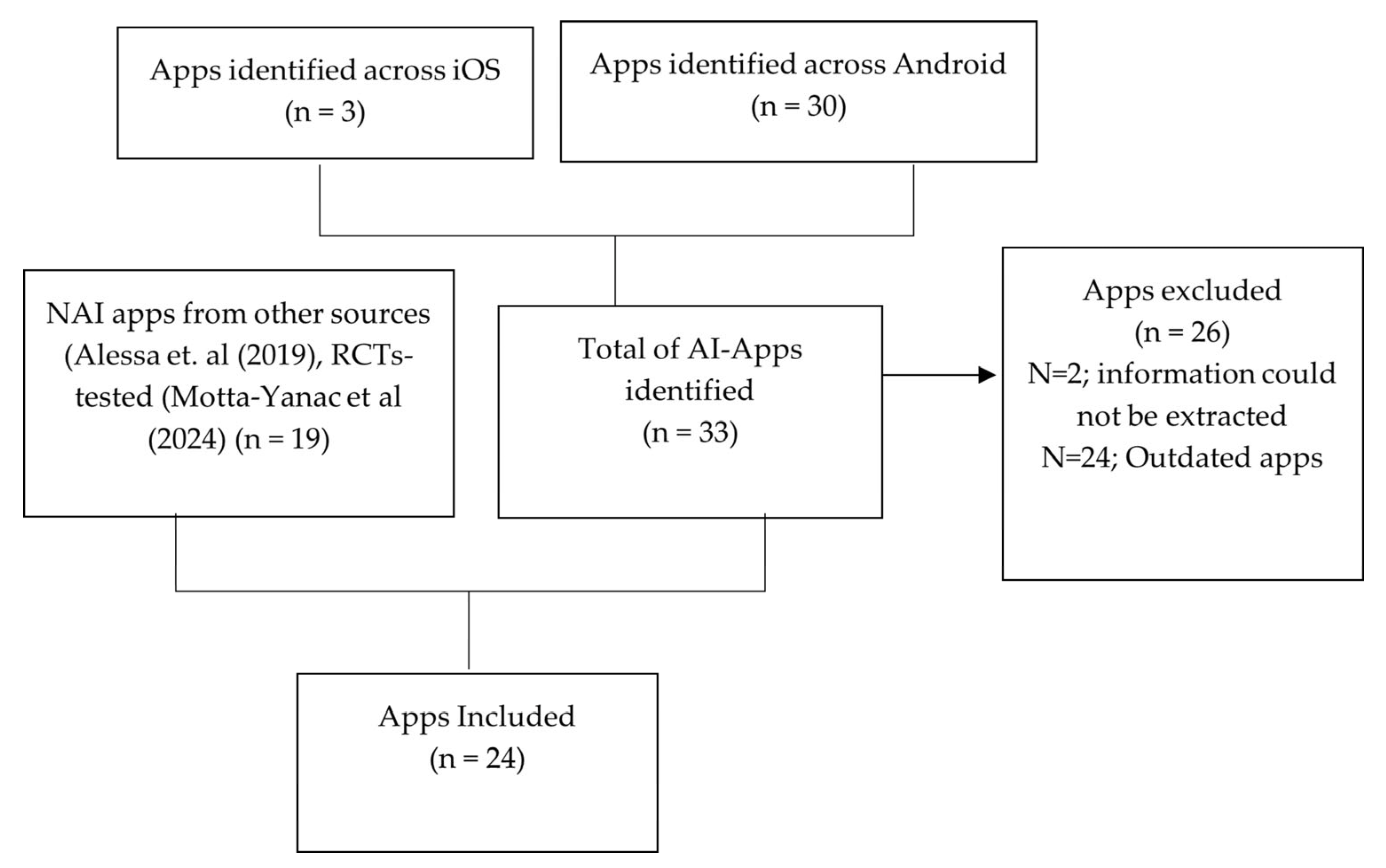 | Functionality | AI-Empowered (N = 7), n (%) | Non-AI (NAI) (N = 10), n(%) | RCT-Tested (N = 7), n (%) | Total (N = 24), n (%) |
