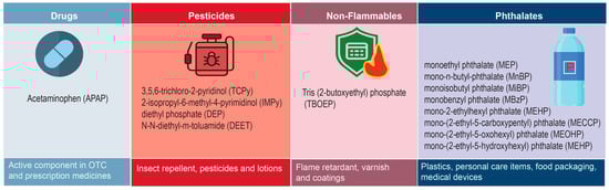 Target analytes: Metabolites of exogenous chemicals from four distinct environmental sources.