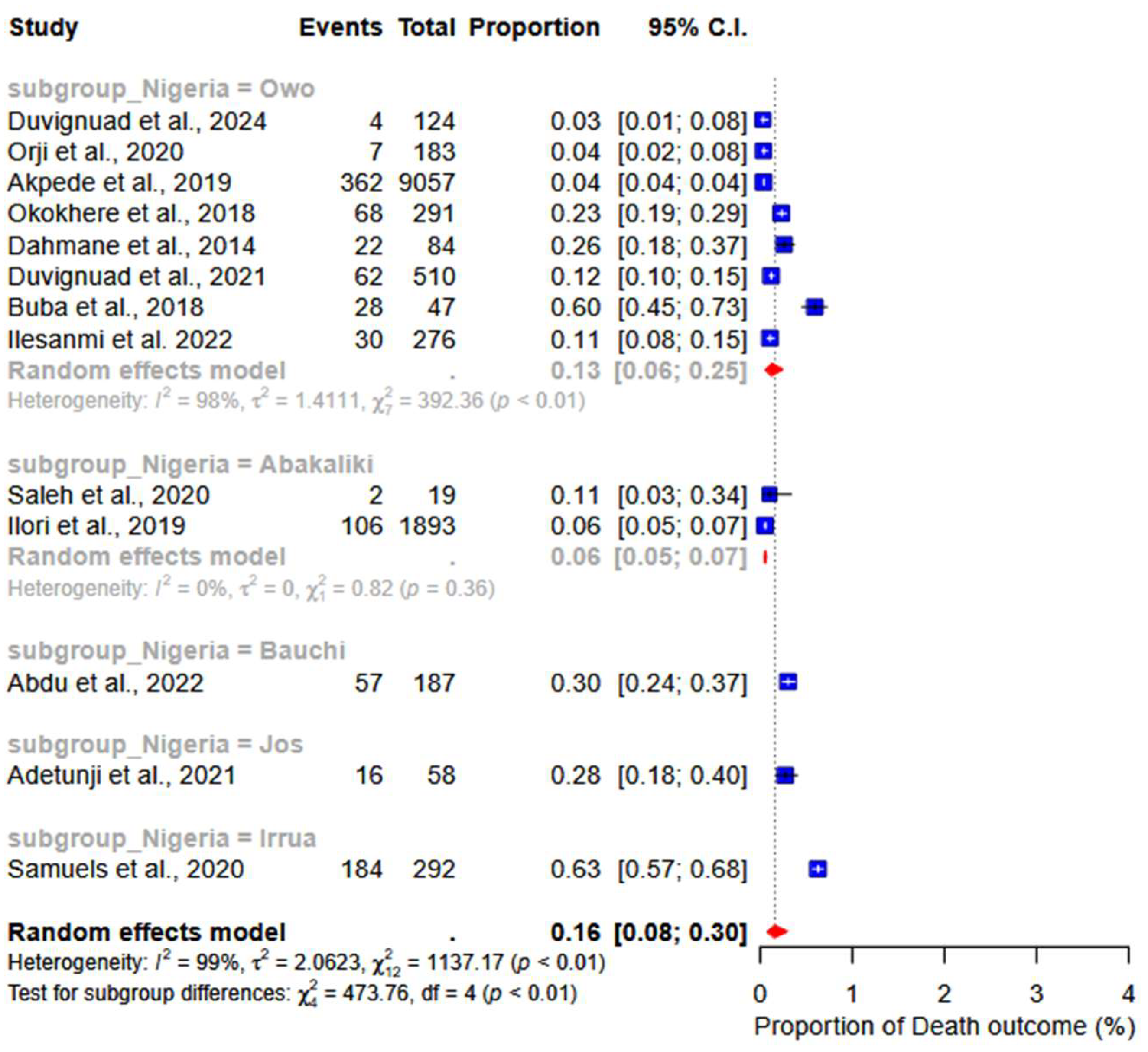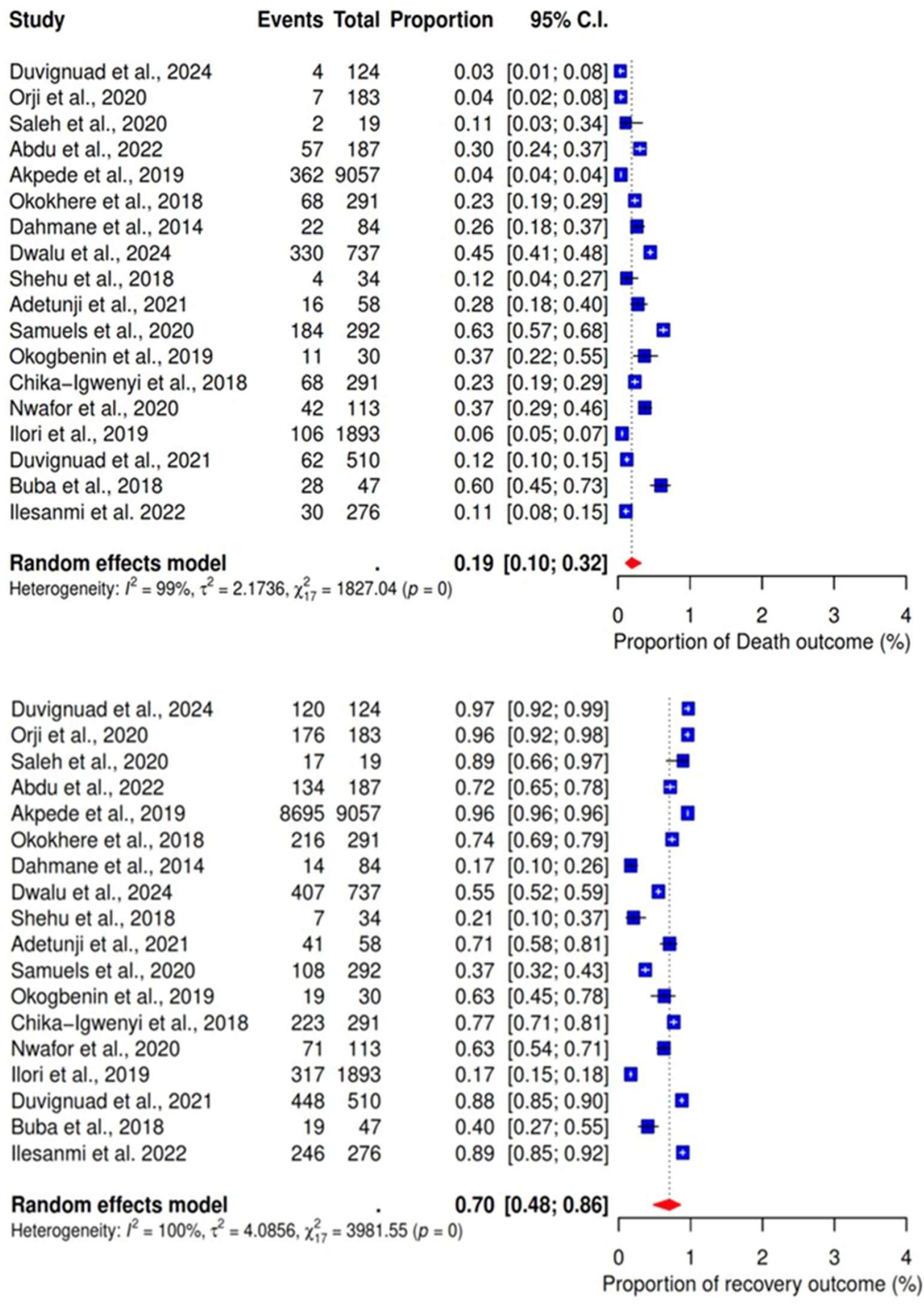 APA StyleOkwuraiwe, A. P., Onyeaghala, C. A., Ozoude, O. T., Suleiman, M. O., Abdu-Aguye, S. N., Ezekwelu, N. J., Oyeniyi, T. A., Jegede, A. O., Egwudo, A. E., Okeke, O. P., Abodunrin, O. R., Akinsolu, F. T., & Sobande, O. O. (2025). Clinical Outcomes of Severe Lassa Fever in West Africa: A Systematic Review and Meta-Analysis. International Journal of Environmental Research and Public Health, 22(10), 1504. https://doi.org/10.3390/ijerph22101504