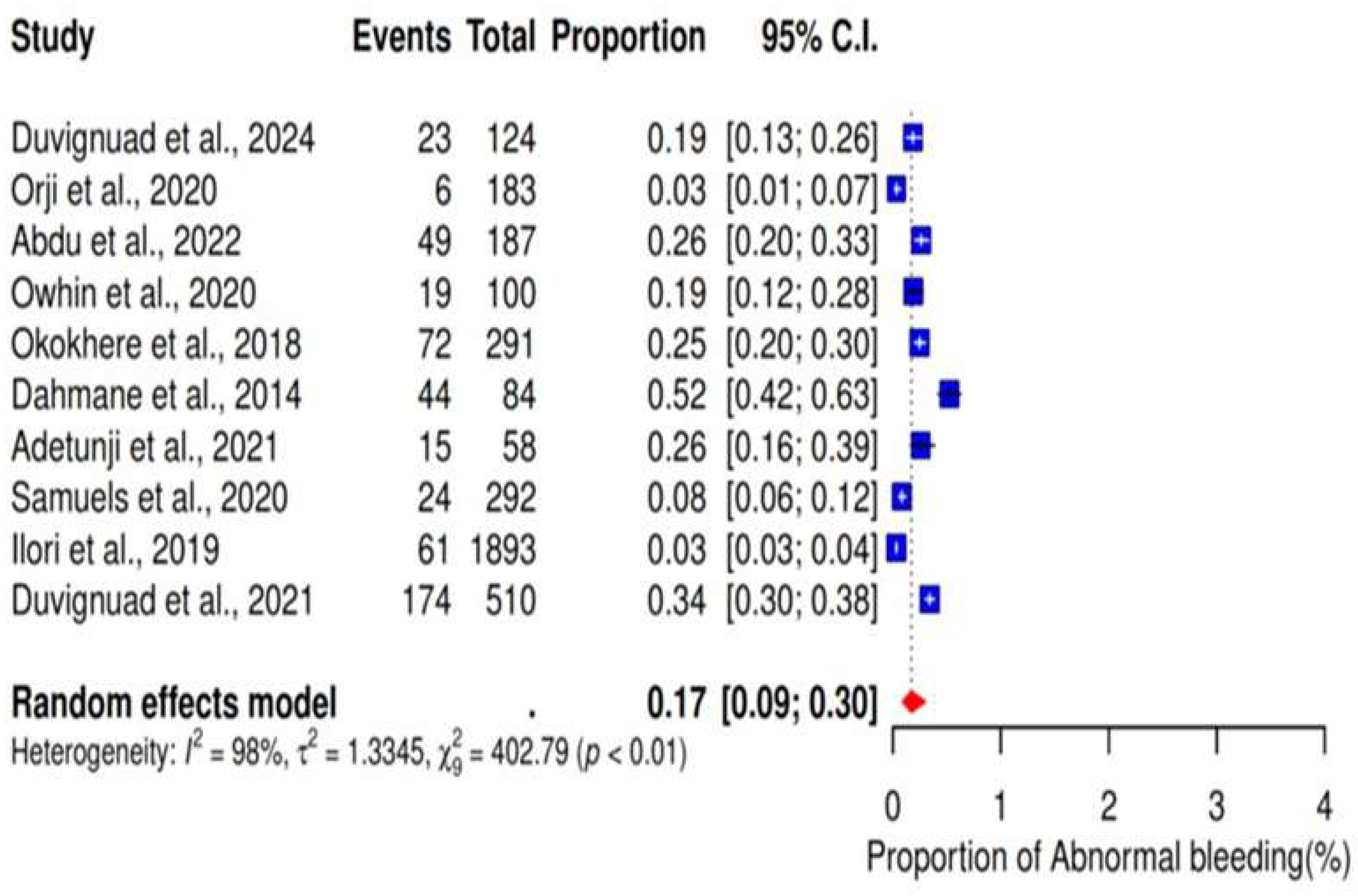 | 8 | Dahmane et al. [24] | 2014 | Constraints in the diagnosis and treatment of Lassa Fever and the effect on mortality in hospitalized children and women with obstetric conditions in a rural district hospital in Sierra Leone. | 14 (38.9) | 22 (61.1) | Abnormal bleeding | - |