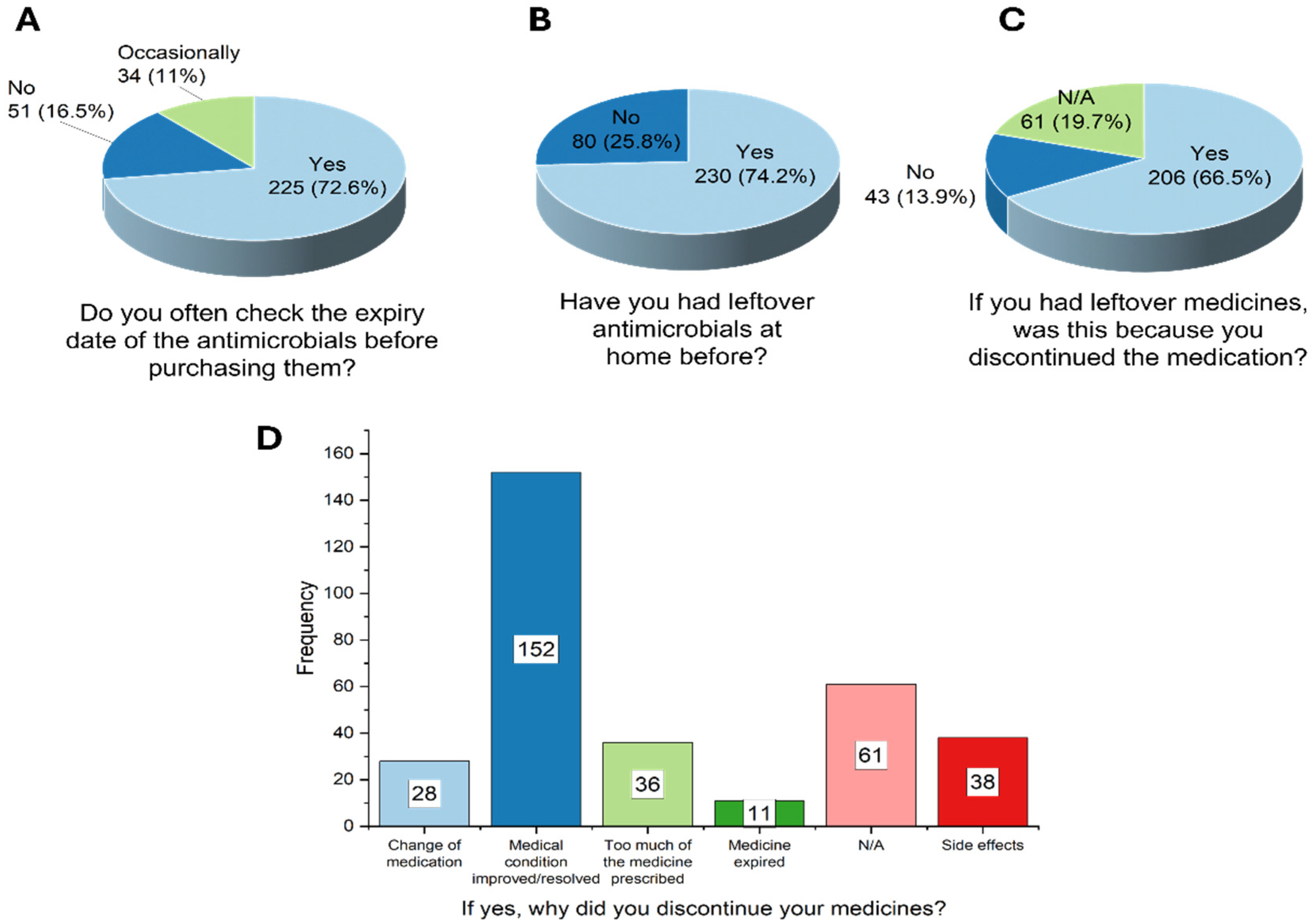 Is there adequate information on the safe disposal of unused antimicrobials from medicine manufacturers (inserts)? | 149 (48.1%) | 119 (38.4%) | 42 (13.5%) | ||