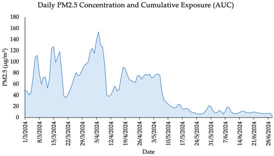 Daily PM2.5 Concentrations and Cumulative Exposure (AUC) Over a 120-Day Period.