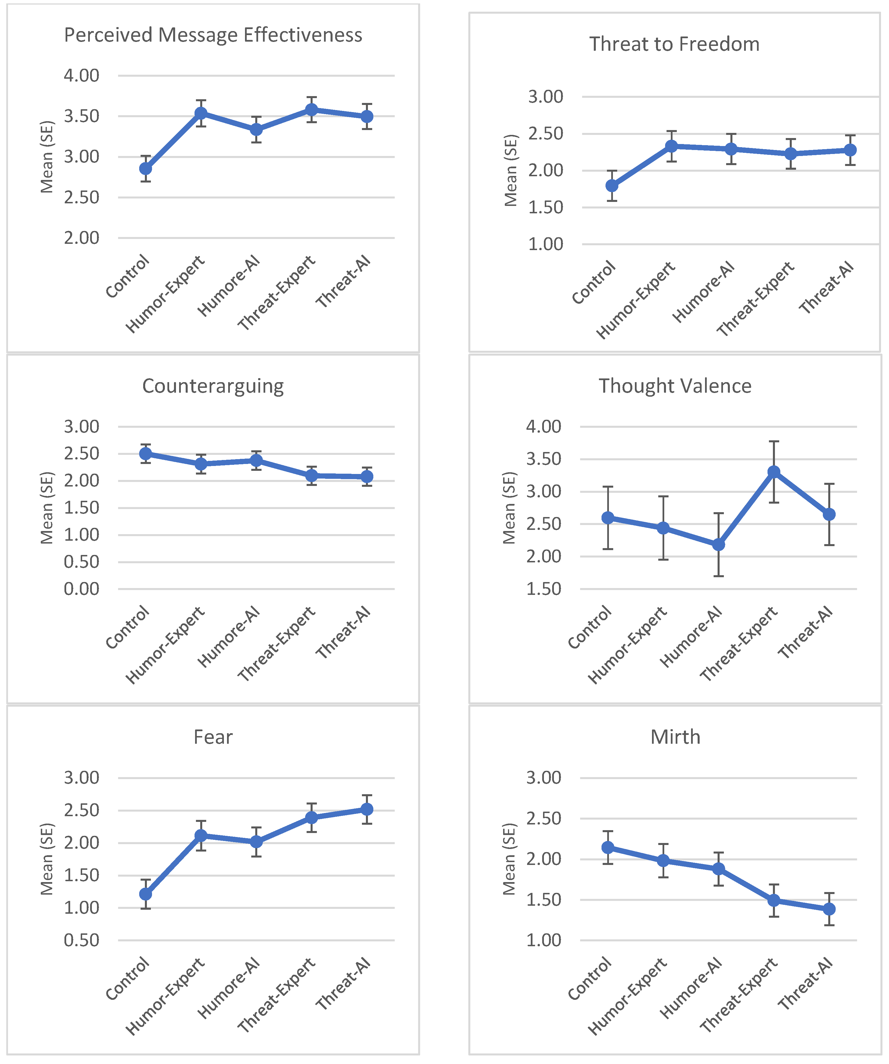 DV | Condition | Humor vs. Threat | Expert vs. Artificial Intelligence (AI) | Interaction |
