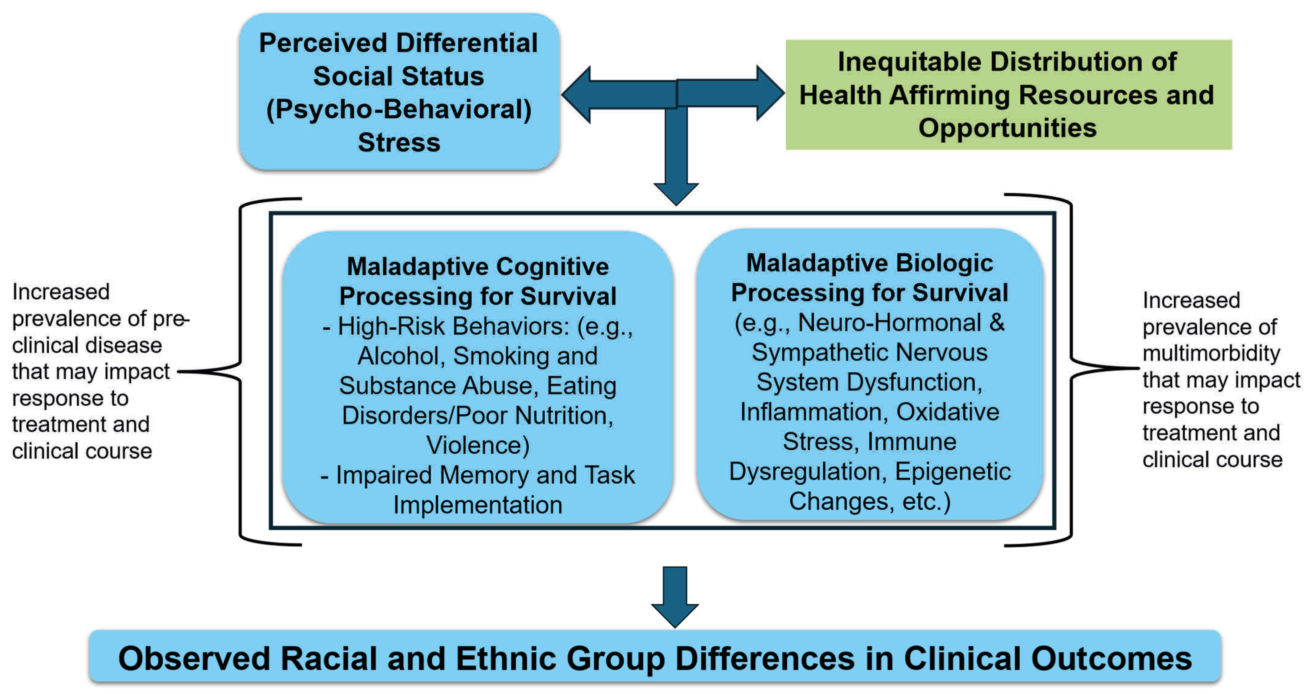 - Thorpe, R.J.; Bruce, M.A., Jr.; Wilder, T.; Jones, H.P.; Thomas-Tobin, C.; Norris, K.C. Health disparities at the intersection of racism, social determinants of health, and downstream biological pathways. Int. J. Environ. Res. Public Health 2025, 22, 703. [Google Scholar] [CrossRef]