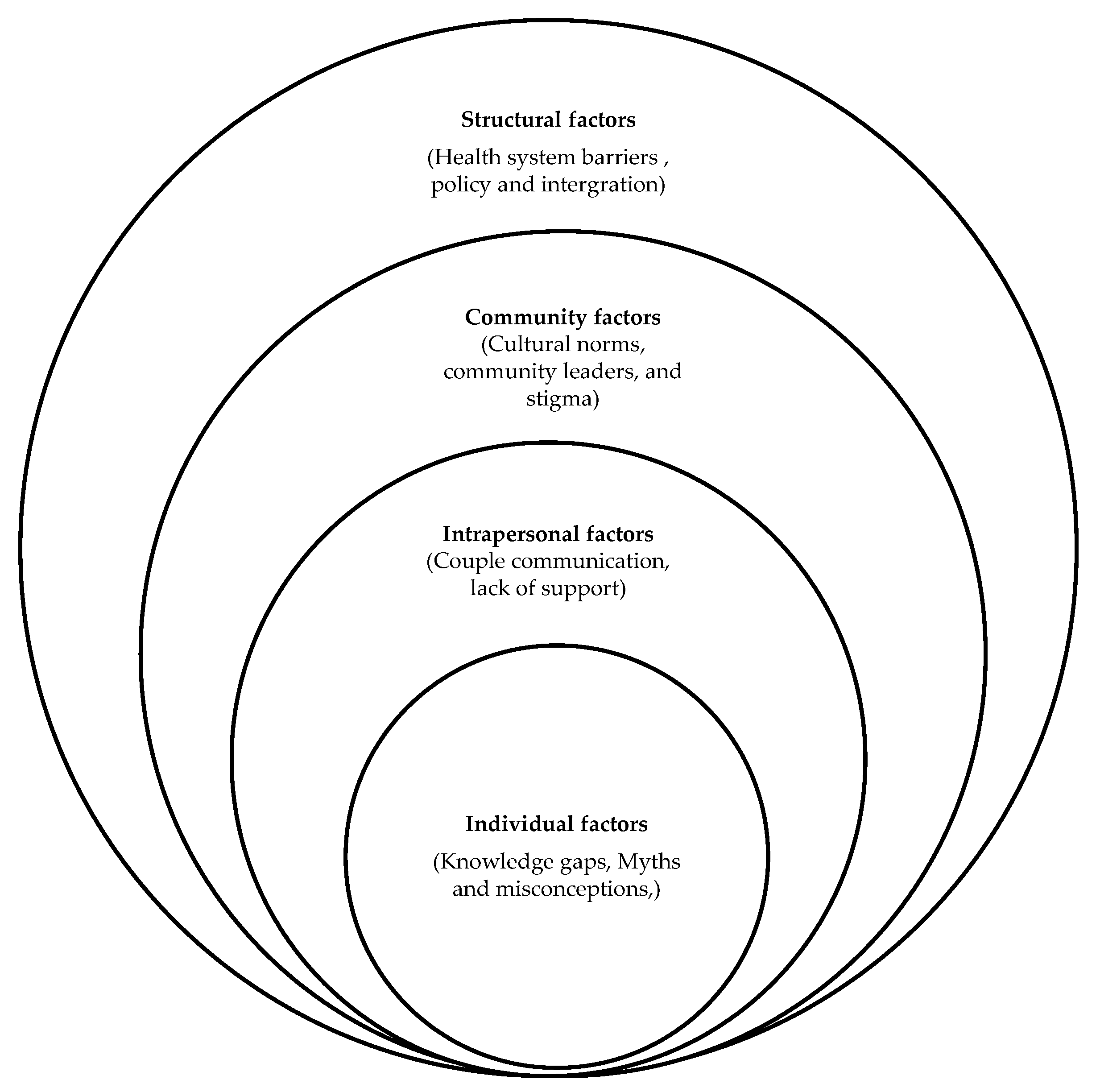 Figure 1. Socio-Ecological Model Illustrating Factors Influencing Male Partner Involvement in Cervical Cancer Prevention and Control [22].
