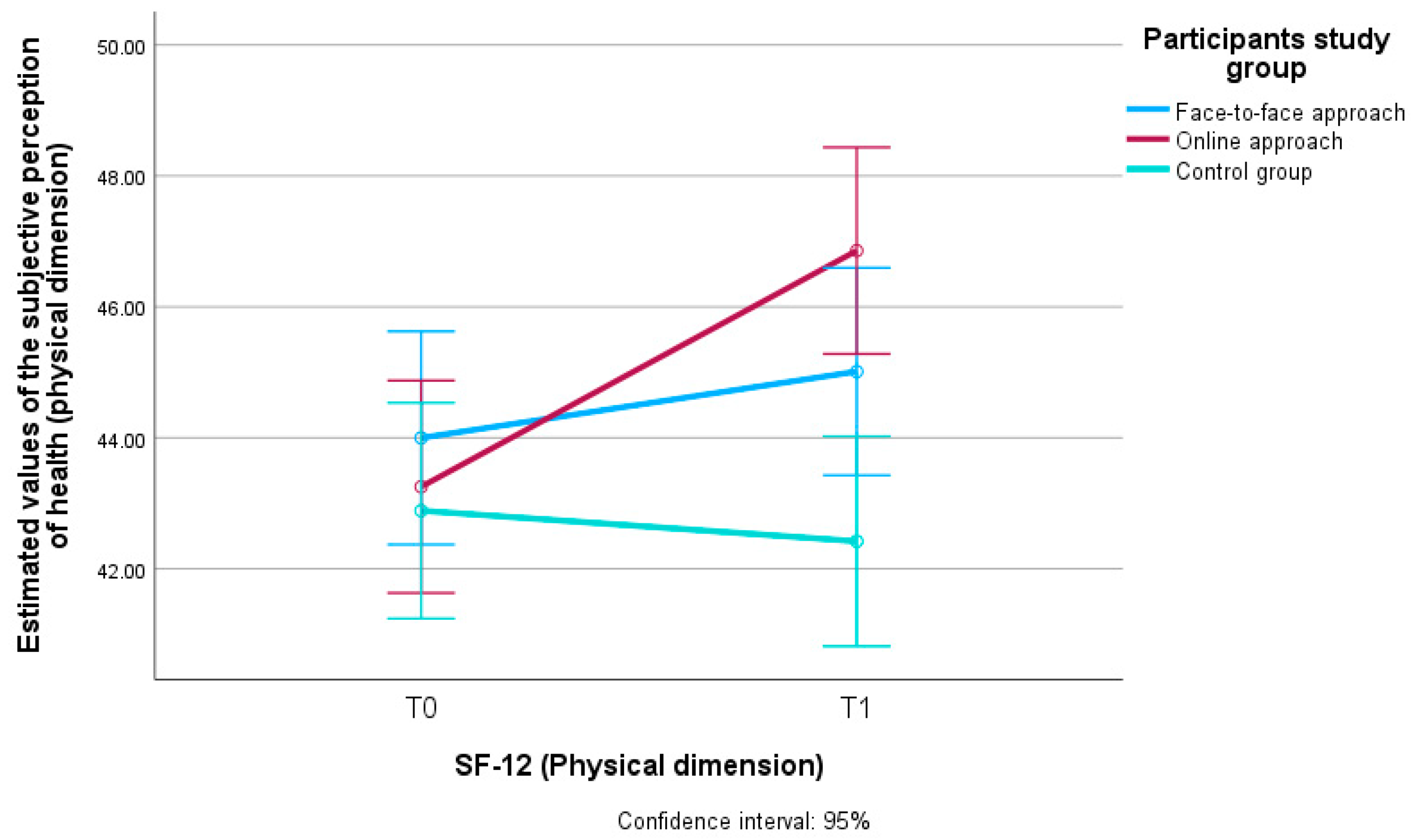 SF-12—Physical dimension x Group: face-to-face, online, control | 549.607 | 2 | 274.803 | 8.723 | <0.001 | 0.043 |
