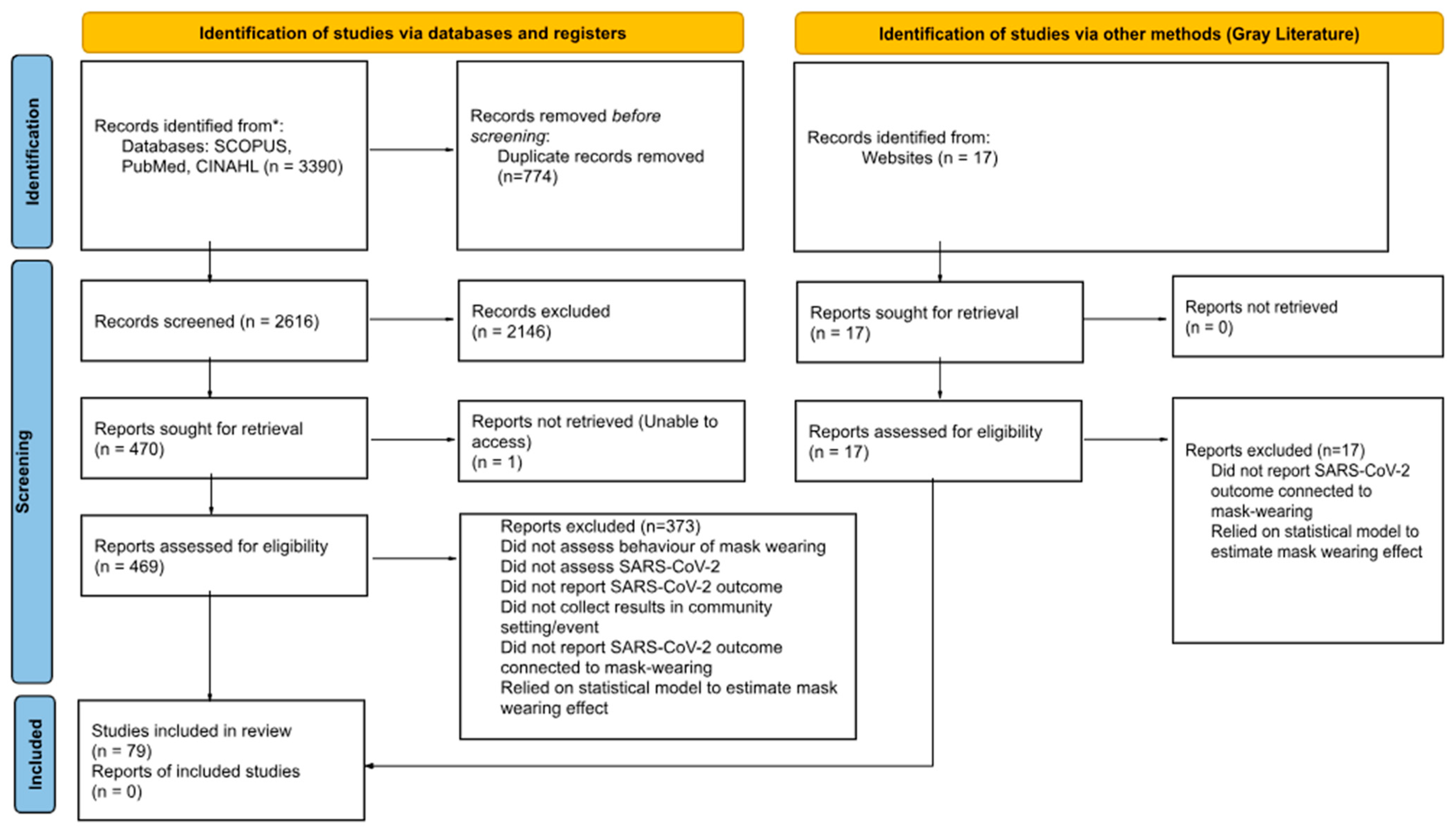 APA StyleCrespo, N. C., Shifflett, S., Kosta, K., Fornasier, J. M., Dionicio, P., Hyde, E. T., Godino, J. G., Ramers, C. B., Elder, J. P., & McDaniels-Davidson, C. (2025). Evidence of Face Masks and Masking Policies for the Prevention of SARS-CoV-2 Transmission and COVID-19 in Real-World Settings: A Systematic Literature Review. International Journal of Environmental Research and Public Health, 22(10), 1590. https://doi.org/10.3390/ijerph22101590