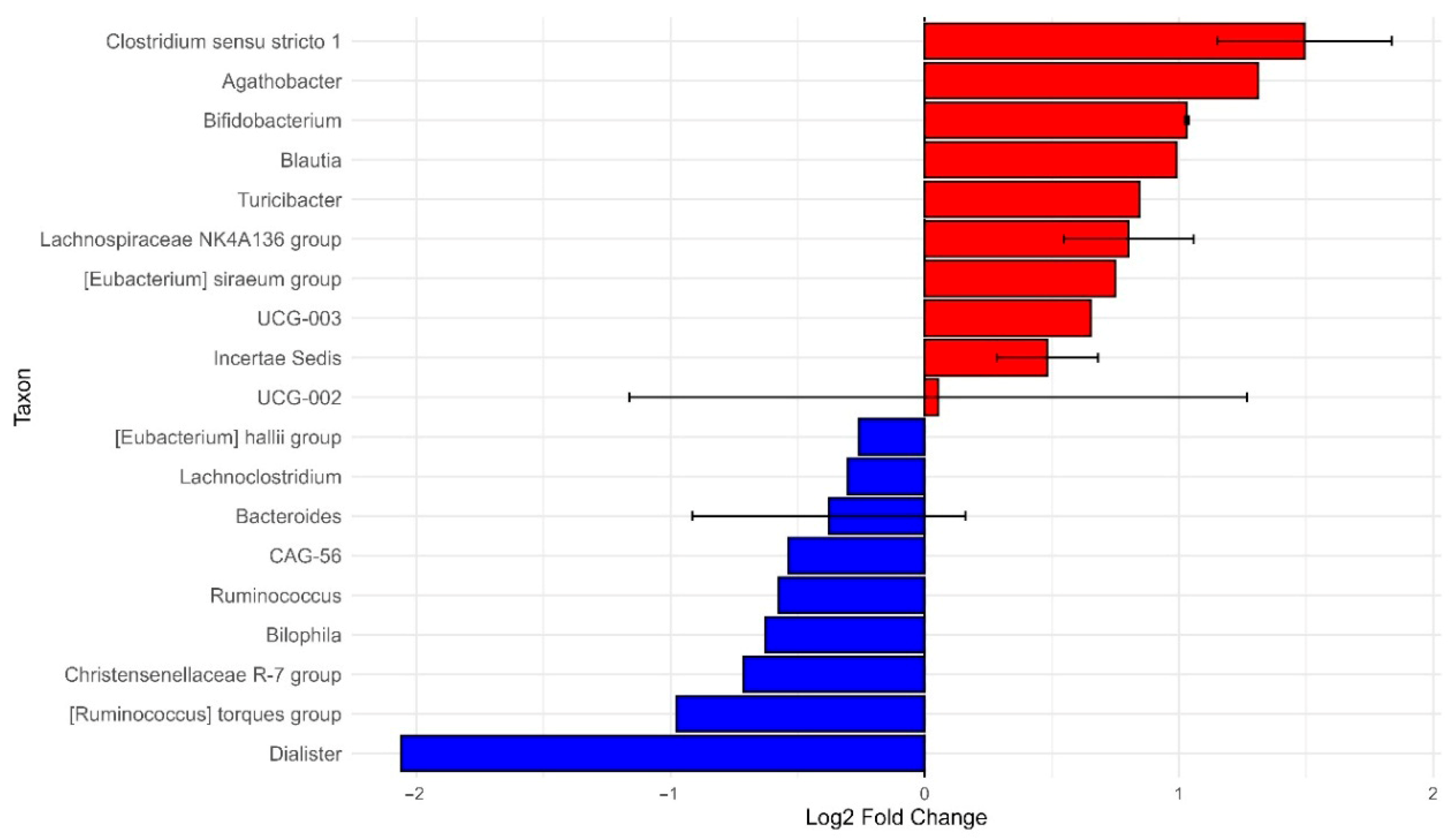 - Paulson, J.N.; Stine, O.C.; Bravo, H.C.; Pop, M. Differential Abundance Analysis for Microbial Marker-Gene Surveys. Nat. Methods 2013, 10, 1200–1202. [Google Scholar] [CrossRef]