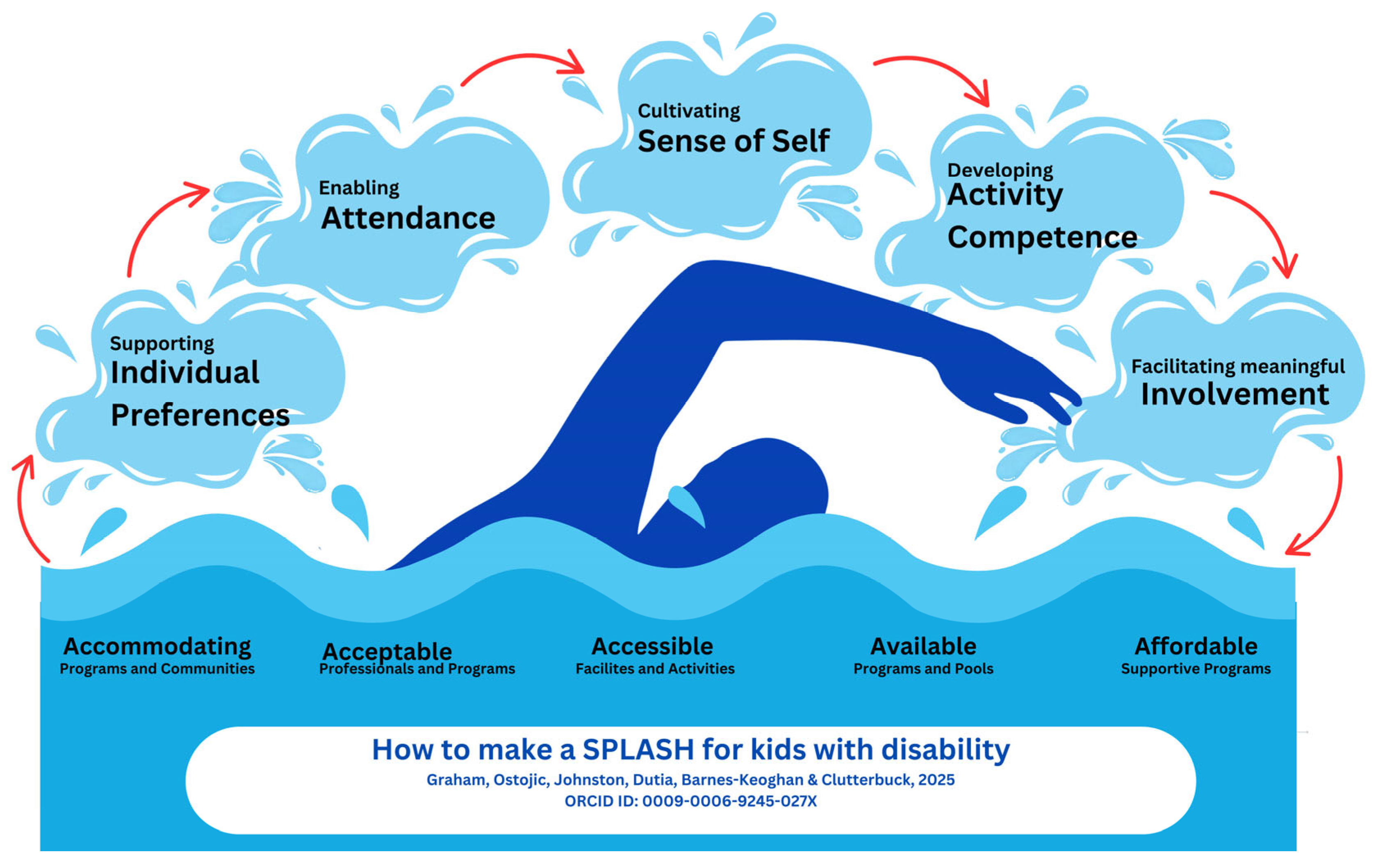 | Participation | Ensuring that swimming opportunities are acceptable, accessible, available, affordable and accommodating so that children with disabilities can attend. |