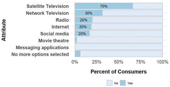 Consumers use different media channels for entertainment purposes (Figure 5). Satellite TV was the most frequently mentioned media type (70%), followed by network TV (30%), and radio (20%), all of which were accessed daily.
