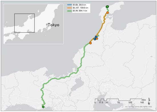 - Ishikawa Prefecture Road Overview of Noto Satoyama Kaido. Available online: https://www.pref.ishikawa.lg.jp/nakanotopublic/notosatoyama/gaiyou.html (accessed on 2 February 2025). (In Japanese).