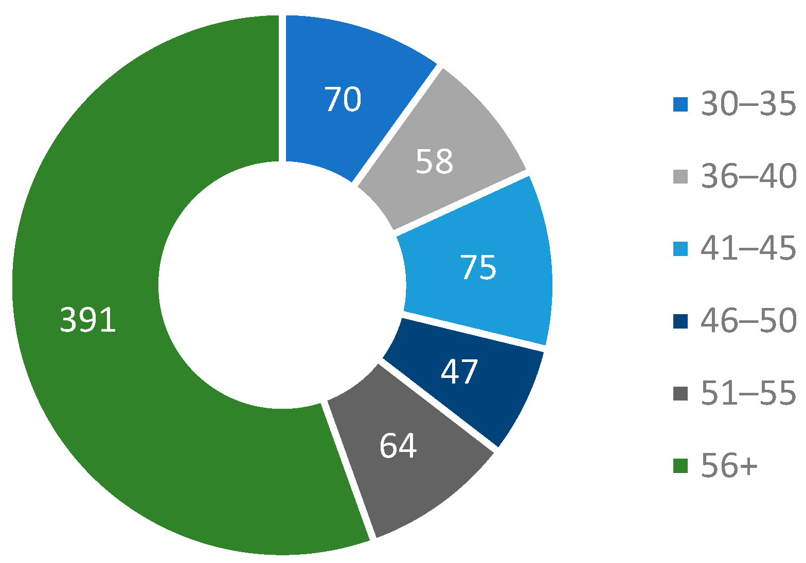 Caries risk was further investigated in younger patients that presented with hyposalivation to investigate declining dentition. Among patients aged 30–35 years old with hyposalivation, only 8 (11.4%) were determined to have low caries risk (