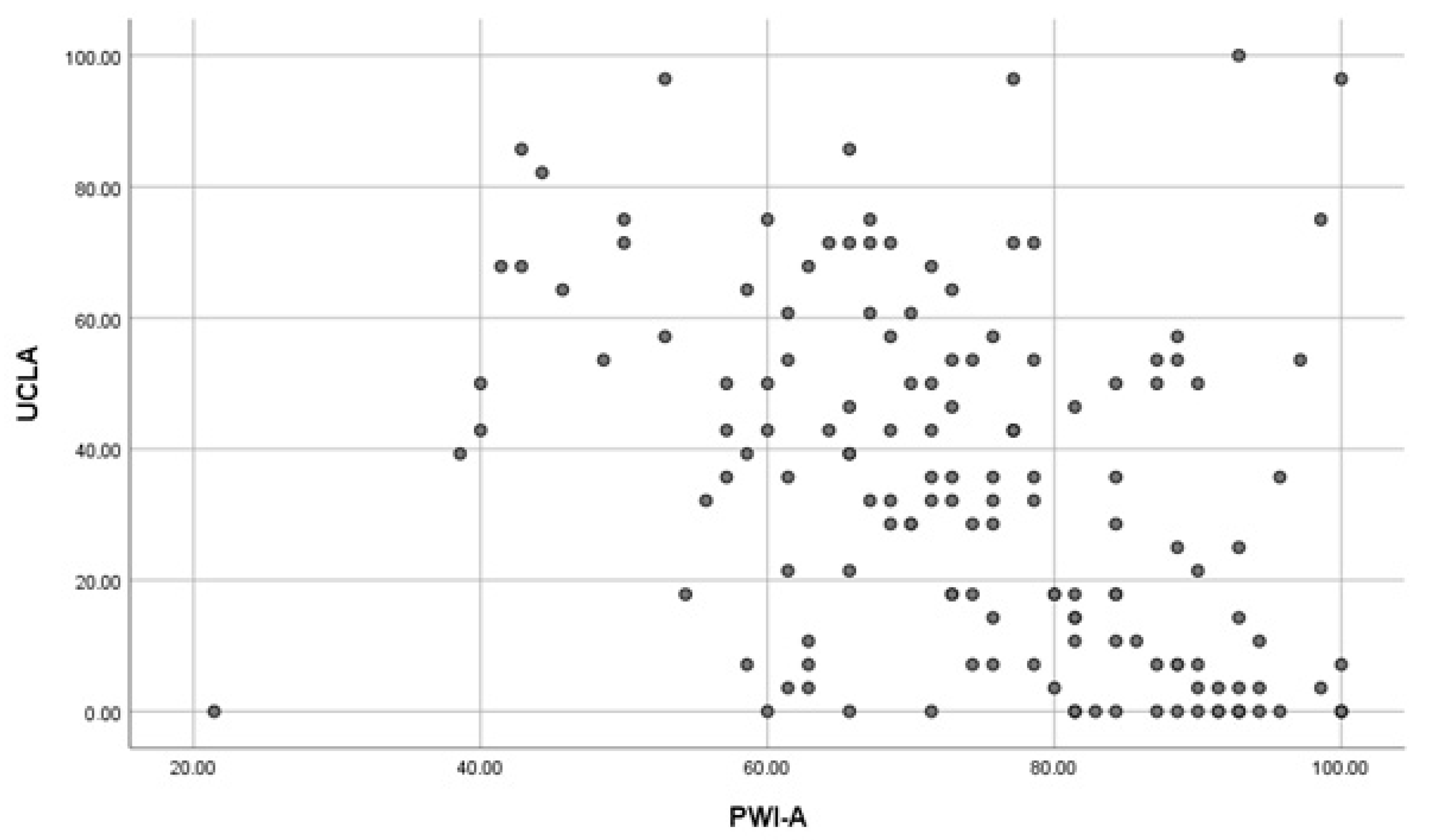 Figure 1. Scatterplot of the correlation between PWI-A and UCLA.