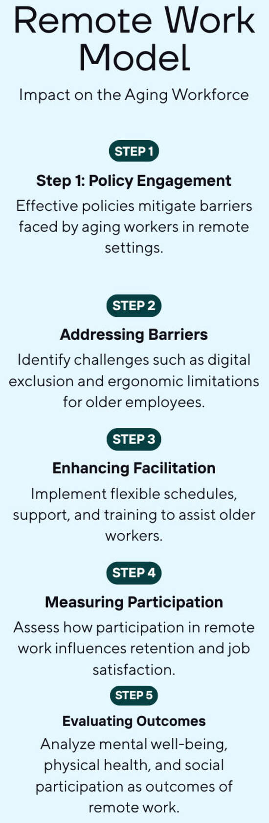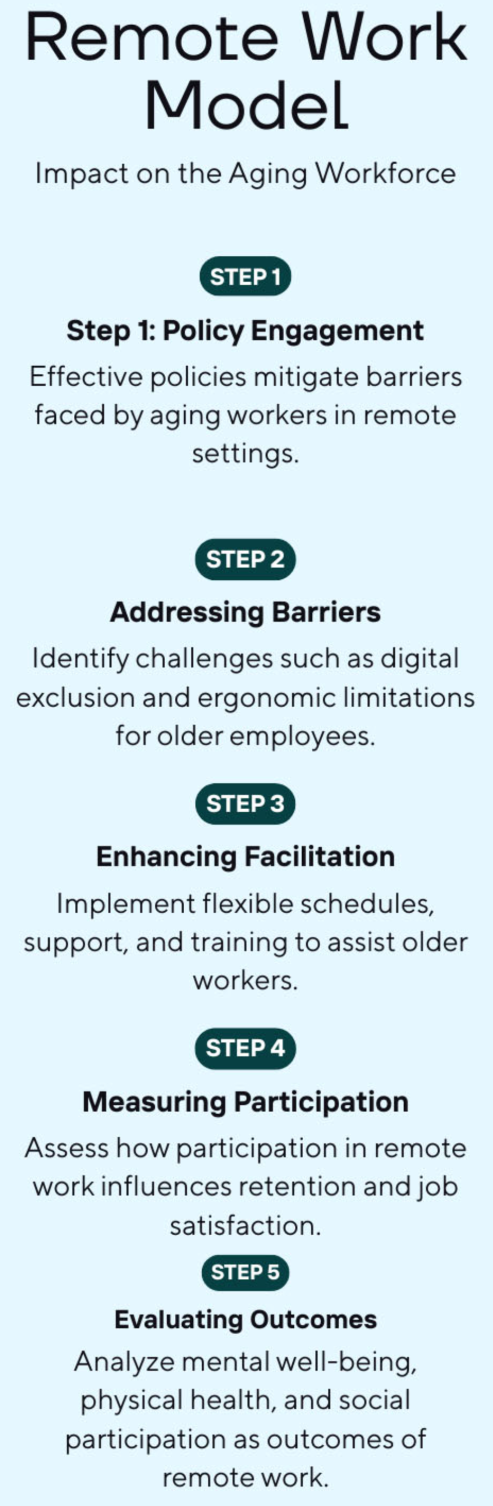 - Identify the main barriers and supports that affect older adults’ participation in remote work and their related well-being outcomes.