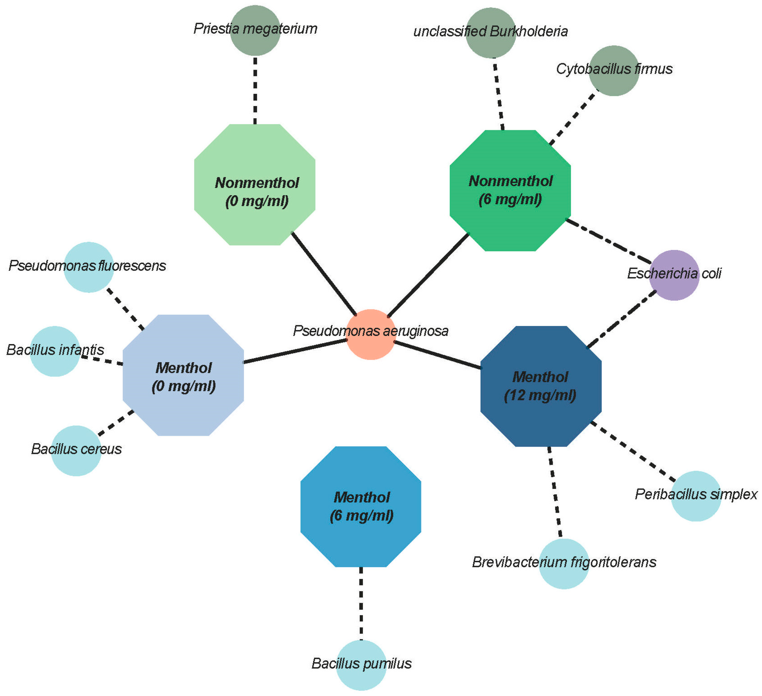 | Non-menthol (0 mg/mL) | Pseudomonas aeruginosa | R | R | S | R | R |