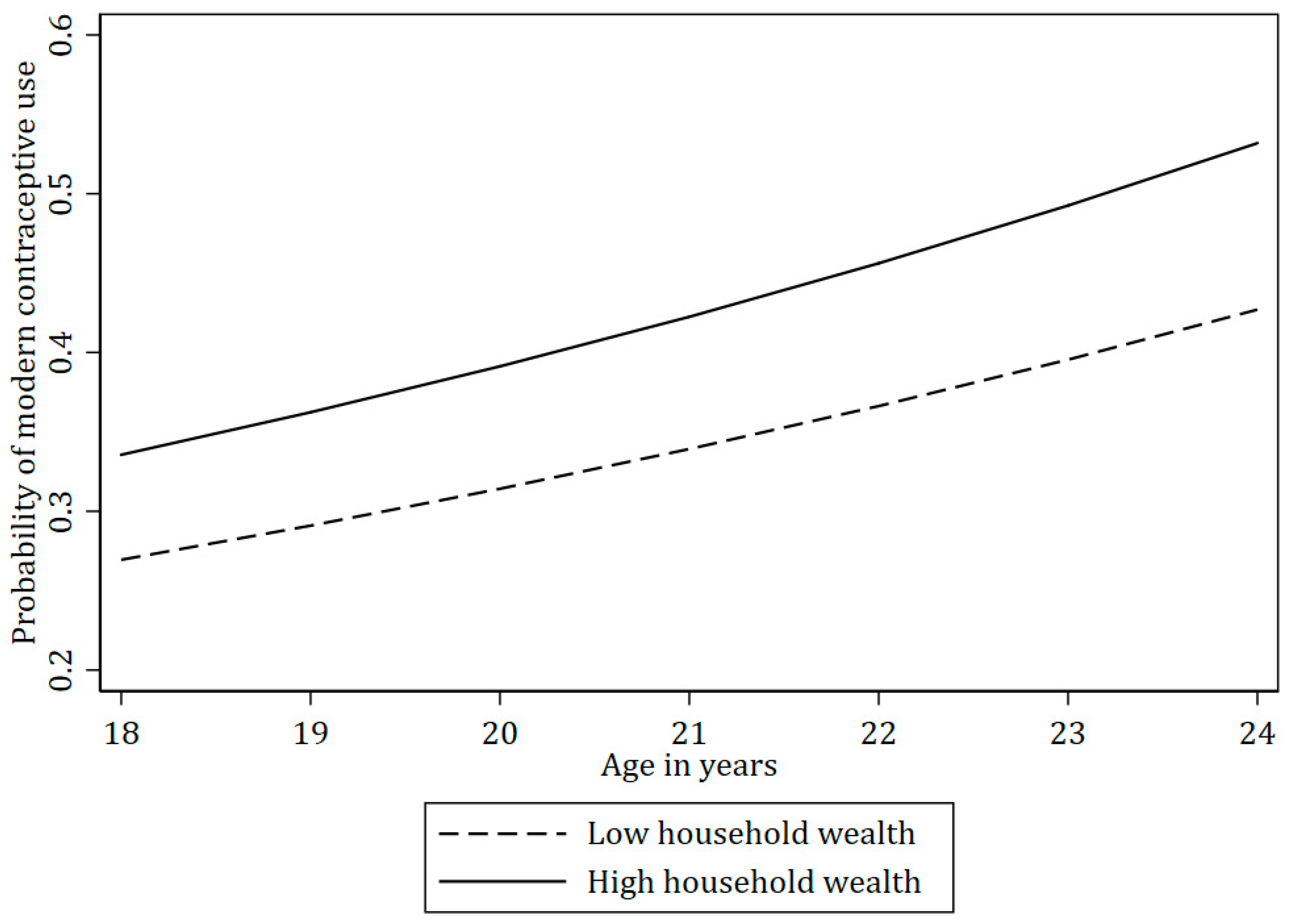 - Asiimwe, J.B.; Ndugga, P.; Mushomi, J.; Ntozi, J.P.M. Factors associated with modern contraceptive use among young and older women in Uganda; a comparative analysis. BMC Public Health 2014, 14, 926. [Google Scholar] [CrossRef]