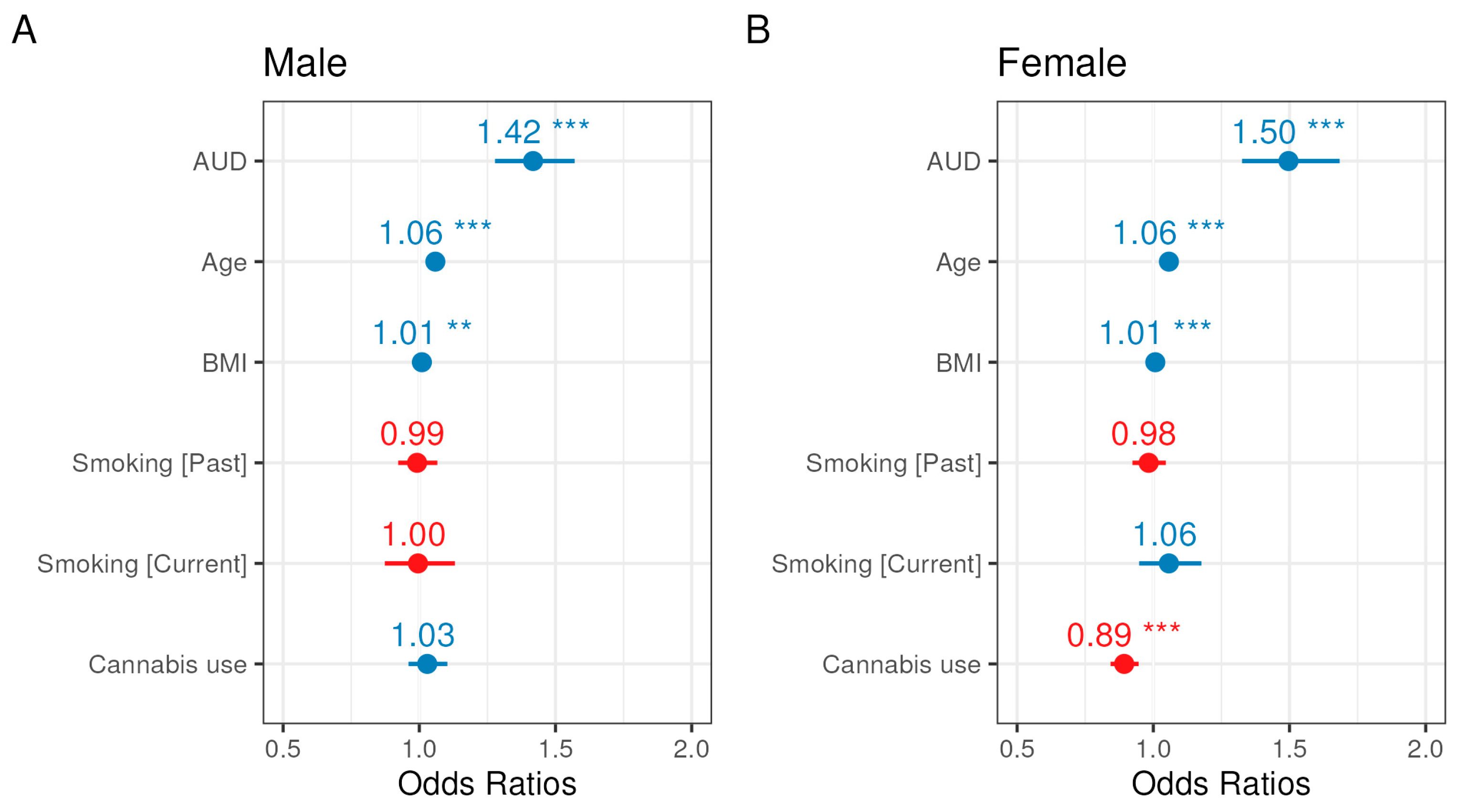 | AUD diagnosis | 1.455 | 1.345–1.572 | <0.001 |