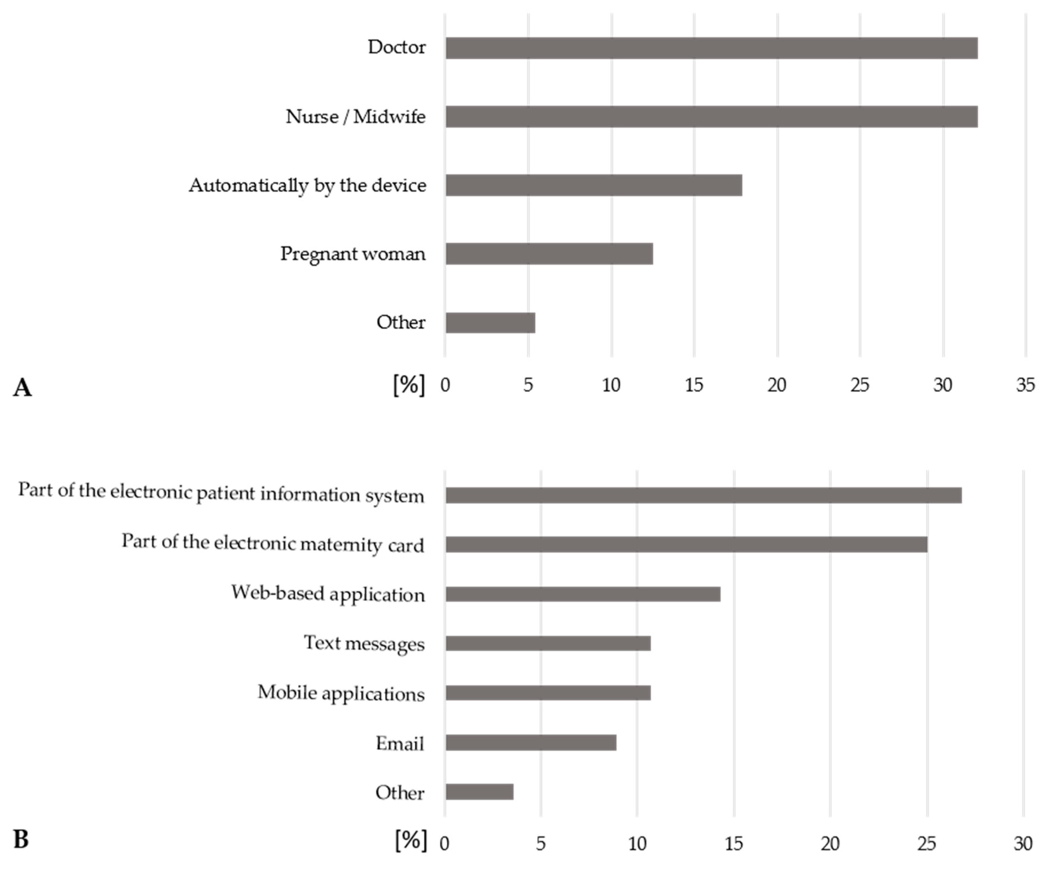 - Lanssens, D.; Vandenberk, T.; Lodewijckx, J.; Peeters, T.; Storms, V.; Thijs, I.M.; Grieten, L.; Gyselaers, W. Midwives’, Obstetricians’, and Recently Delivered Mothers’ Perceptions of Remote Monitoring for Prenatal Care: Retrospective Survey. J. Med. Internet Res. 2019, 21, e10887. [Google Scholar] [CrossRef]