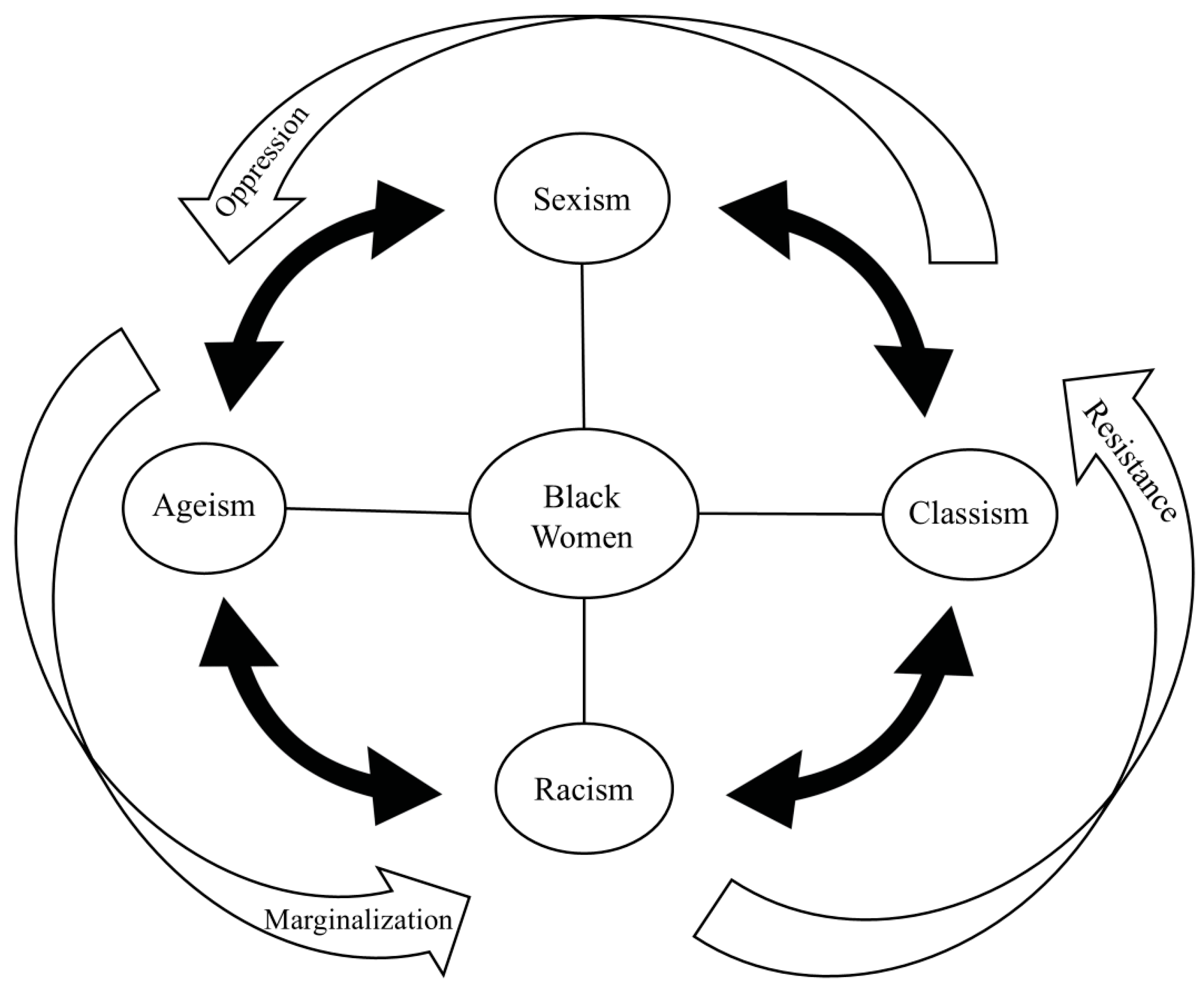 Broadly, intersectionality describes how systems and flows of power, privileges, and resources disadvantage and privilege groups and individuals. We also use intersectionality as a working epistemological framework to move beyond “health disparities in aging” research from a categorical and comparative perspective, with the aim to encourage new research questions and ways of thinking about aging and later life, using women racialized as Black as a case example. Centering group nexuses, such as gender and race, can help counter what researchers call intersectional invisibility, or the erasure of subgroups, such as Black women, from aging research and from broader social consciousness (i.e., older Black women’s issues are not at the fore of women’s health, aging research, or health disparities agendas) [86]. Rather than reinforcing a hierarchy of discrimination types, this approach recognizes that additional dimensions of exclusion in later life (i.e., ageism) may be uniquely experienced by those whose life trajectories have been shaped by multiple, intersecting forms of oppression.