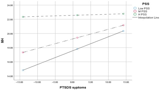 Moderation effect of PSS in the relationship between PTSD and MH interactions.